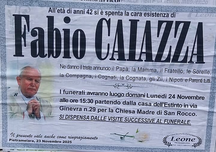 E’ venuto a mancare nelle scorse ore Fabio Caiazza di soli 42 anni. La notizia si è diffusa in poco tempo in città lasciando attoniti e sgomenti familiari ed amici.