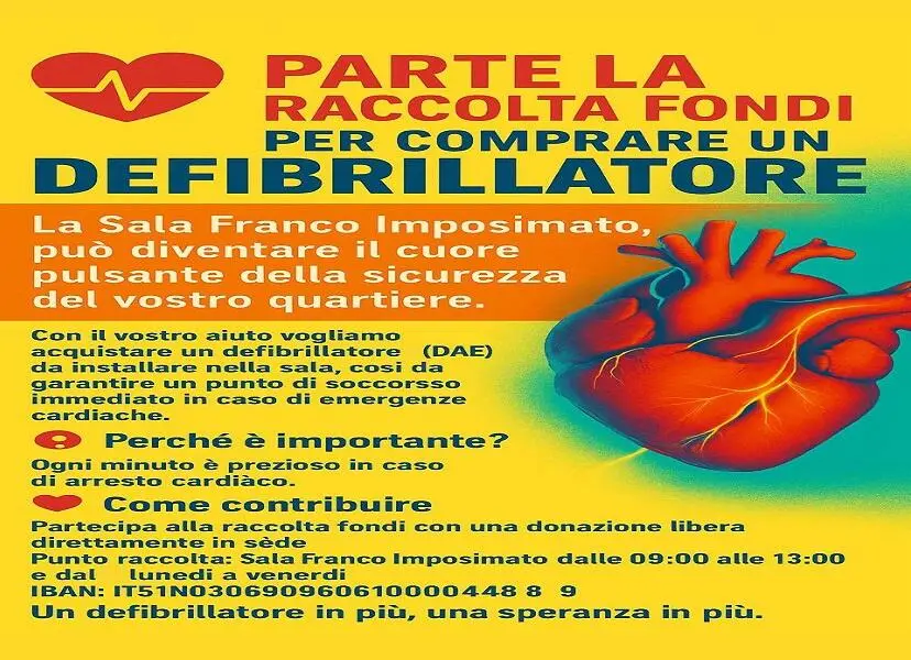 L’iniziativa punta naturalmente ad impiantare un defibrillatore nella Sala Imposimato in modo da poter essere utilizzato in caso di necessità, mettendo in sicurezza l’intero corso I ottobre, la principale strada cittadina.