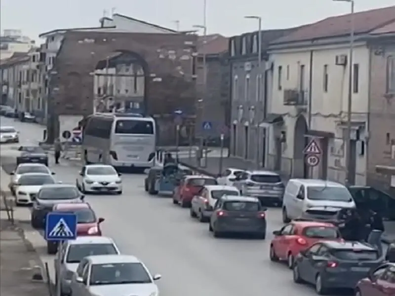 A causa del mancato rispetto di un cartello stradale, sul quale poi sono emersi dubbi anche sulla visibilità, un pullman con a bordo dei turisti in visita all’Antica Capua è rimasto bloccato sotto l’Arco di Adriano.