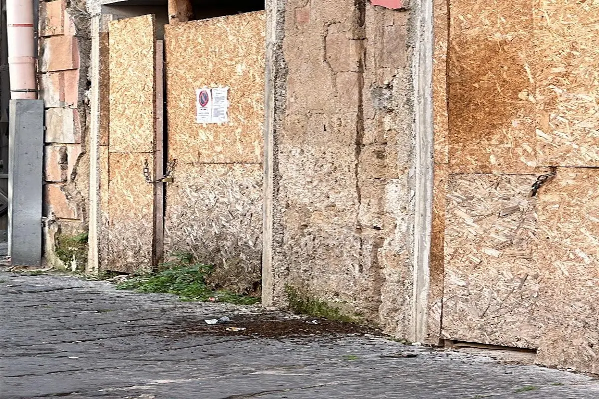 In dei locali chiusi con pannelli in legno che affacciano sulla strada, da diversi giorni si nota una folta presenza di api a testimonianza della presenza di alcuni alveari venutisi a creare all’interno.