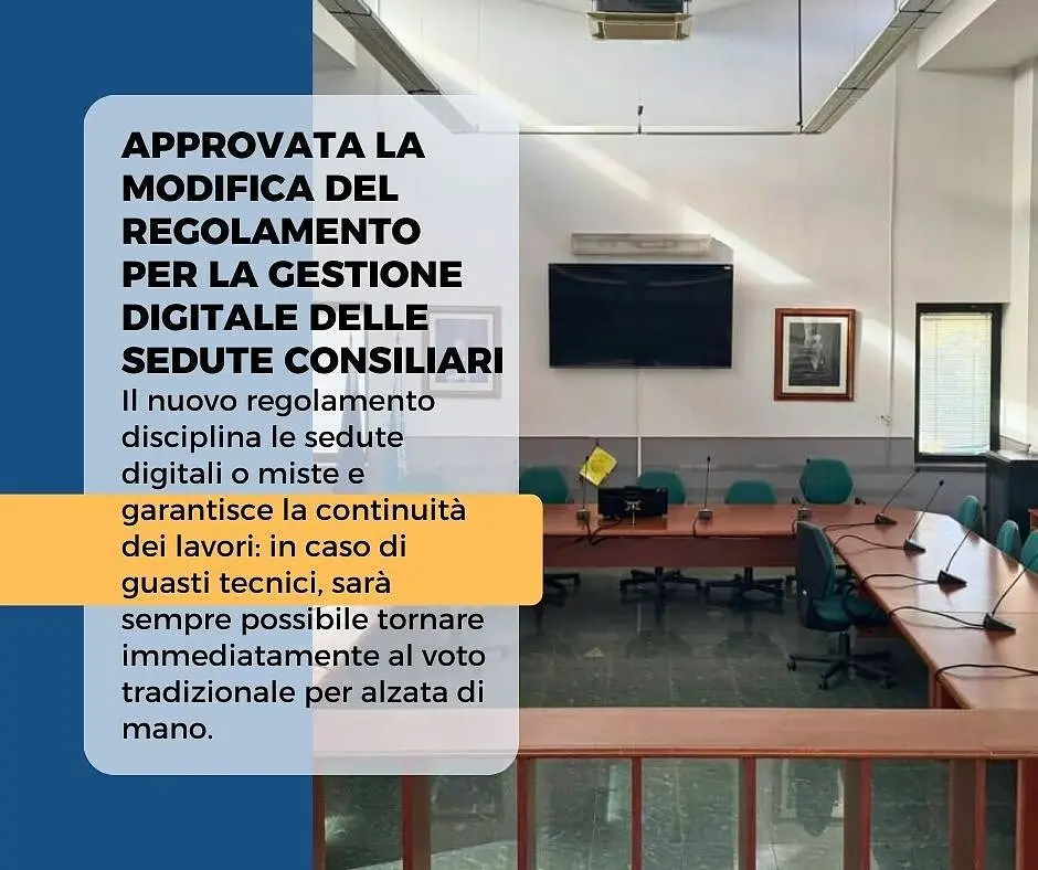 Il provvedimento è stato portato inizialmente in commissione Statuto e Regolamento e successivamente approvato in consiglio comunale con voto unanime. L’aggiornamento regolamentare consente di operare con maggiore serenità e sicurezza, assicurando continuità e correttezza nelle attività consiliari anche in modalità digitale.