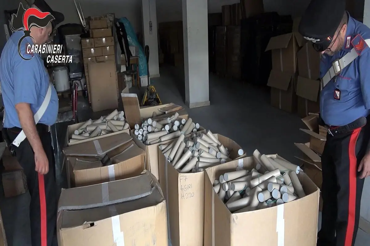 Il materiale pirotecnico sequestrato è risultato essere del tipo improvvisato, sprovvisto di qualsiasi autorizzazione e privo di sistemi di sicurezza individuale e antincendio. La fabbricazione e la manipolazione, come accertato dai militari, avveniva su banchi di circostanza e il caricamento degli ordigni mediante il riempimento dei cilindri, con disseminazione di componenti delle miscele sul pavimento.