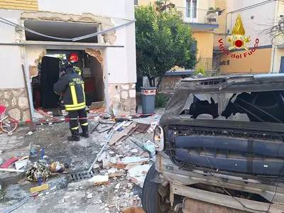 Distrutte le porte d'accesso e danneggiate le mura esterne: pezzi di mattoni sulle auto e sui balconi dei palazzi di fronte