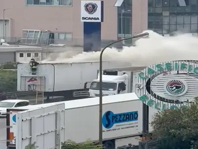 Panico sulla statale, rimorchio prende fuoco: colonna di fumo in cielo