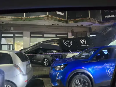 Maltempo in provincia, insegna si stacca e cade sulle auto in sosta
