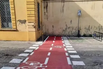 Pista ciclabile finisce nel muro, polemica e risate per la foto sul web