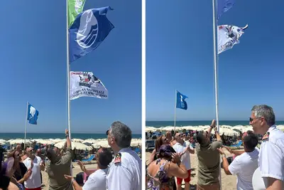 Bandiera contro la violenza sulle donne sulle spiagge di Baia Domizia