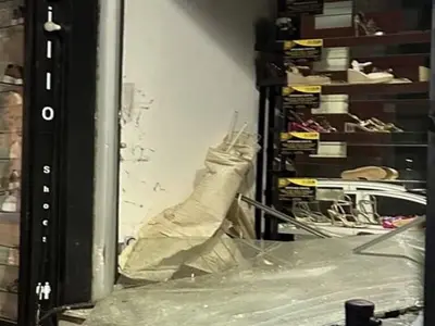 Panico nella notte, petardo distrugge la vetrina di un negozio di scarpe
