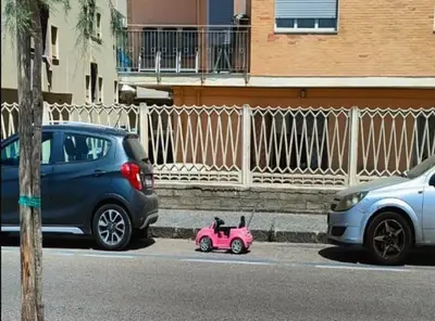 Macchinina per bambini parcheggiata nelle strisce blu a Mondragone: la foto diventa virale