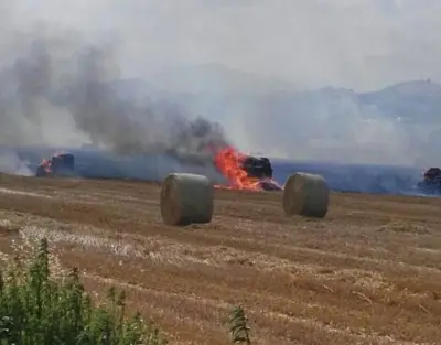 Panico sulla Domiziana, a fuoco balle di fieno in un terreno a Sessa