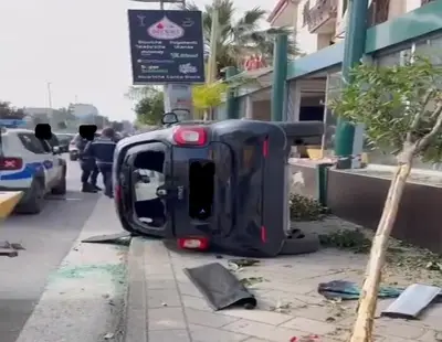 Incidente in centro, auto si ribalta e si schianta davanti al bar