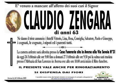 Claudio Zengara è morto all'età di 63 anni. Lascia fratelli e sorelle: stamane l'ultimo saluto