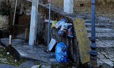 Rifiuti abbandonati davanti alla chiesa di San Benedetto a Maddaloni