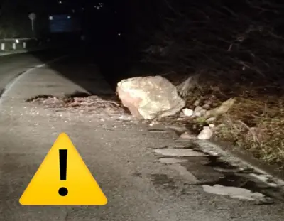 Pericolo sulla provinciale, grosso masso invade la carreggiata