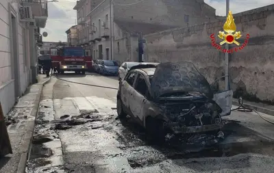 Auto in fiamme in pieno centro, vigili del fuoco in azione