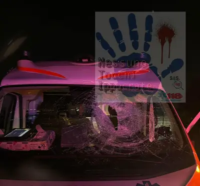 Paura all'alba, ambulanza colpita da un mattone: parabrezza in frantumi