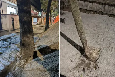 Cemento sulle radici e tagli agli alberi, Giovine denuncia i danni dei lavori in via Ferrarecce