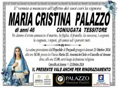 Maria Cristina Palazzo lascia il marito ed una bimba piccola: oggi i funerali