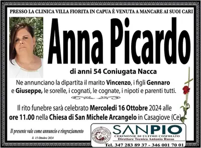 Anna Picardo si è spenta a 54 anni. Questa mattina i funerali a Casagiove