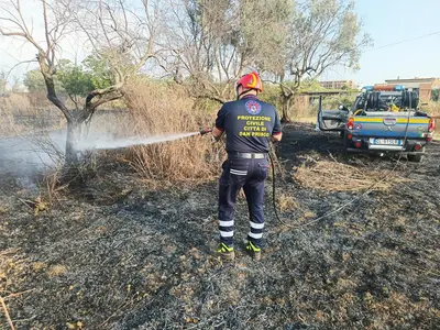 Incendio tra le sterpaglie, protezione civile e vigili del fuoco domano le fiamme