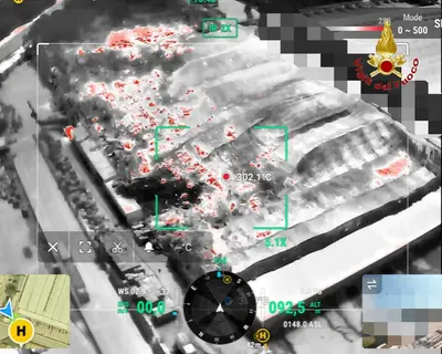 Incendio capannone, spegnimento in corso: impiegati anche i droni