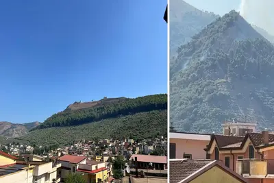 Brucia la collina di Talanico, la gente si è riversata in strada. Nube di fumo avvolge tutto il territorio di San Felice a Cancello