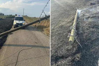 Rogo ai margini della strada, crolla palo dell'energia elettrica