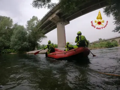 Esercitazione vigili del fuoco sul Volturno, simulato intervento per alluvione