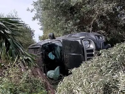 Incidente sull'Appia Antica, auto esce fuori strada e si ribalta nel terreno