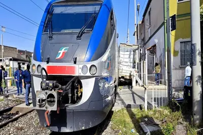 Scontro al passaggio a livello, treno colpisce autocarro incastrato tra le sbarre
